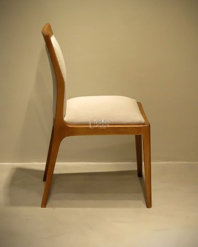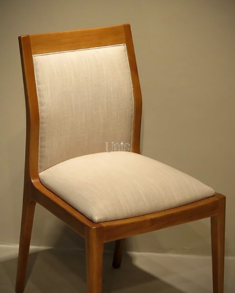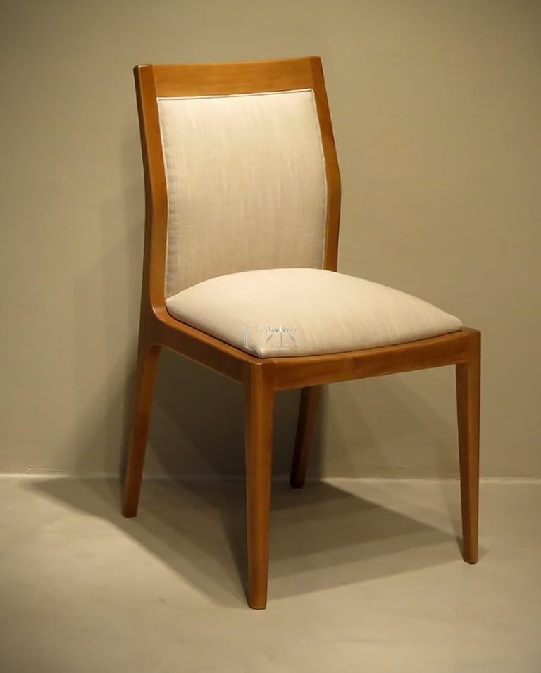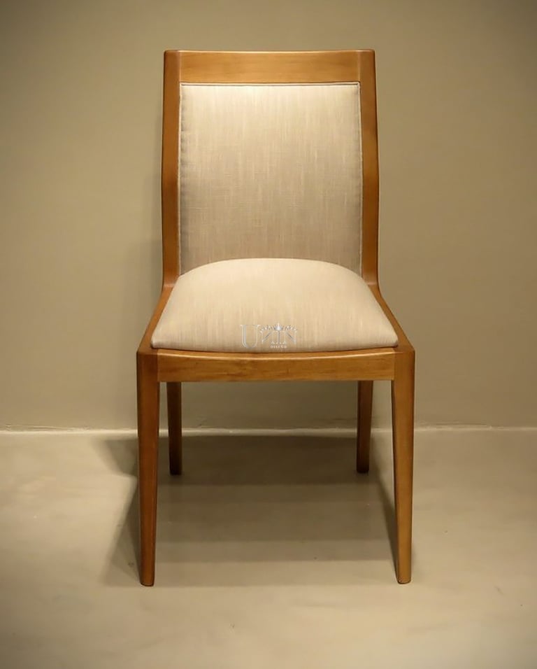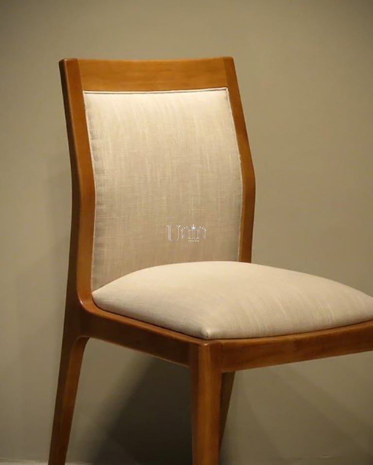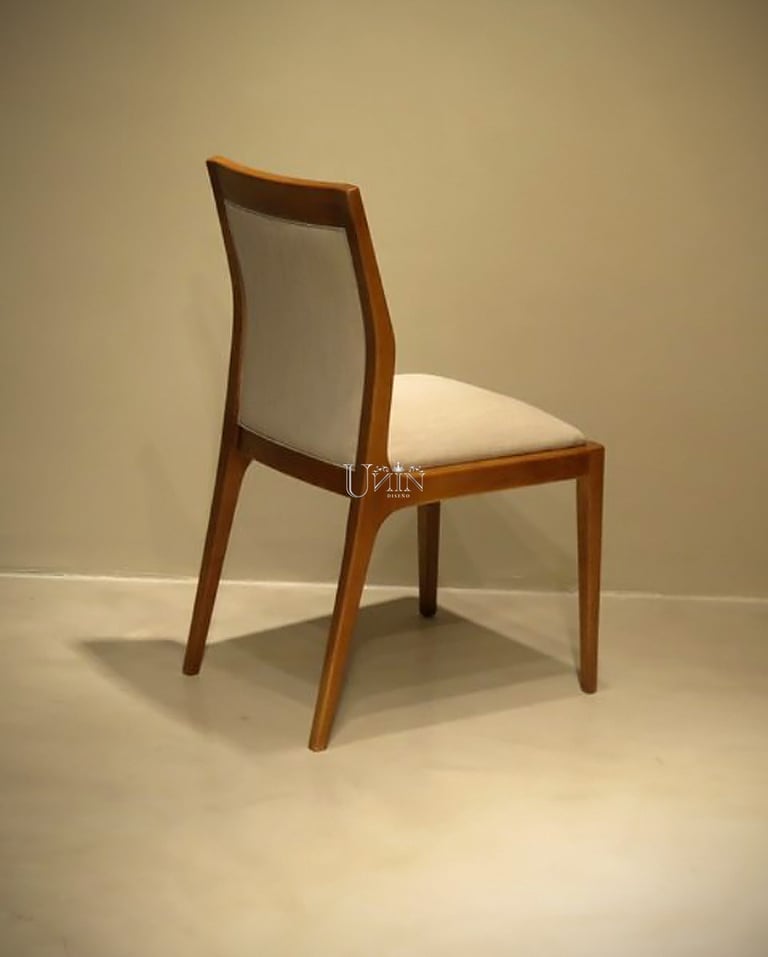 Silla de diseño estilizado y elegante con tapizado en asiento y respaldo.