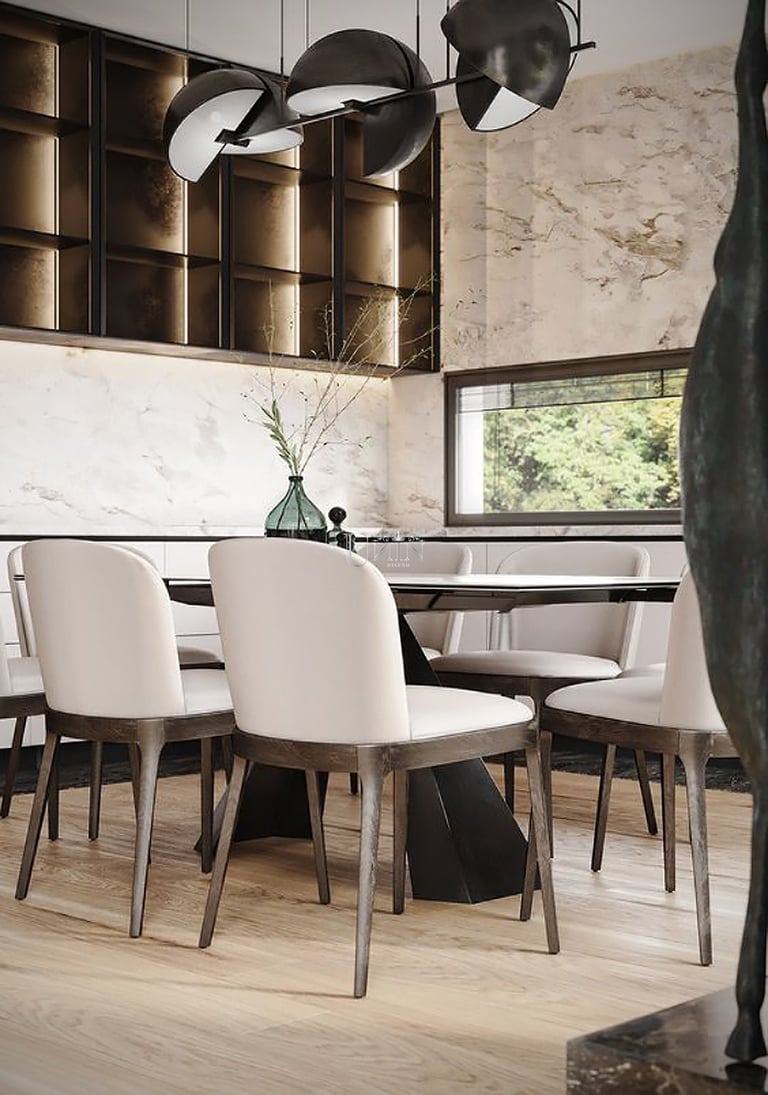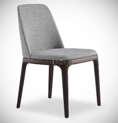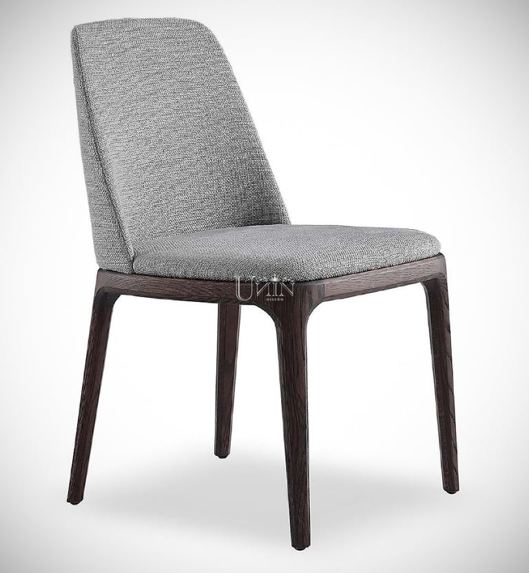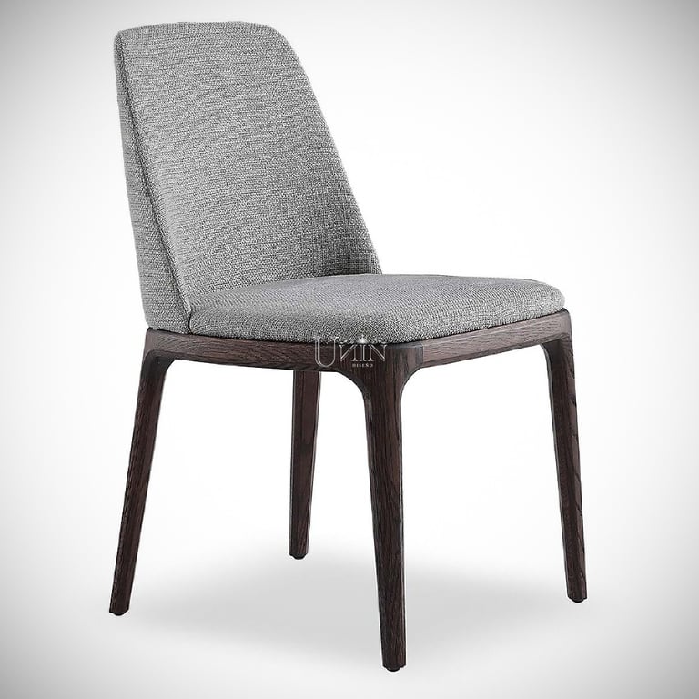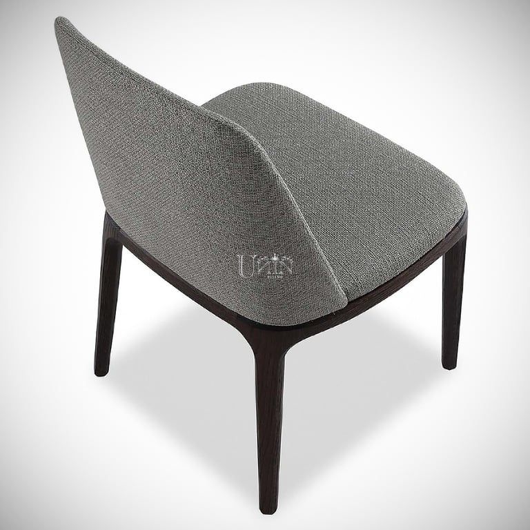 Silla de diseño estilizado y elegante con tapizado en asiento y respaldo.