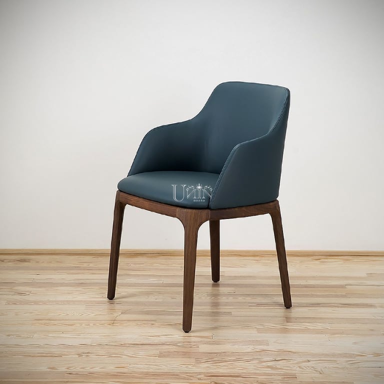 Silla de diseño estilizado y elegante con tapizado en asiento y respaldo.