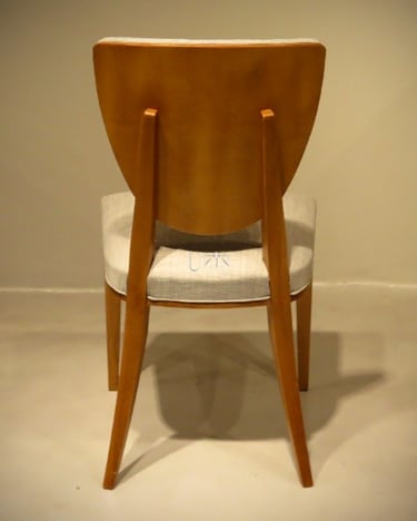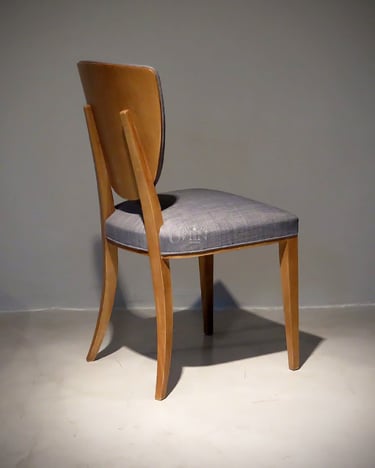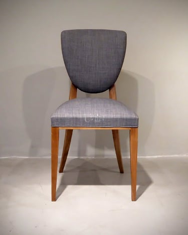 Silla de diseño estilizado y elegante con tapizado en asiento y respaldo.