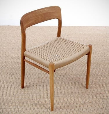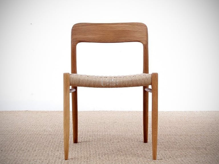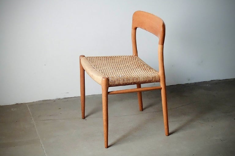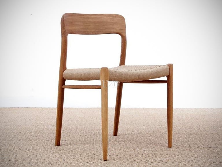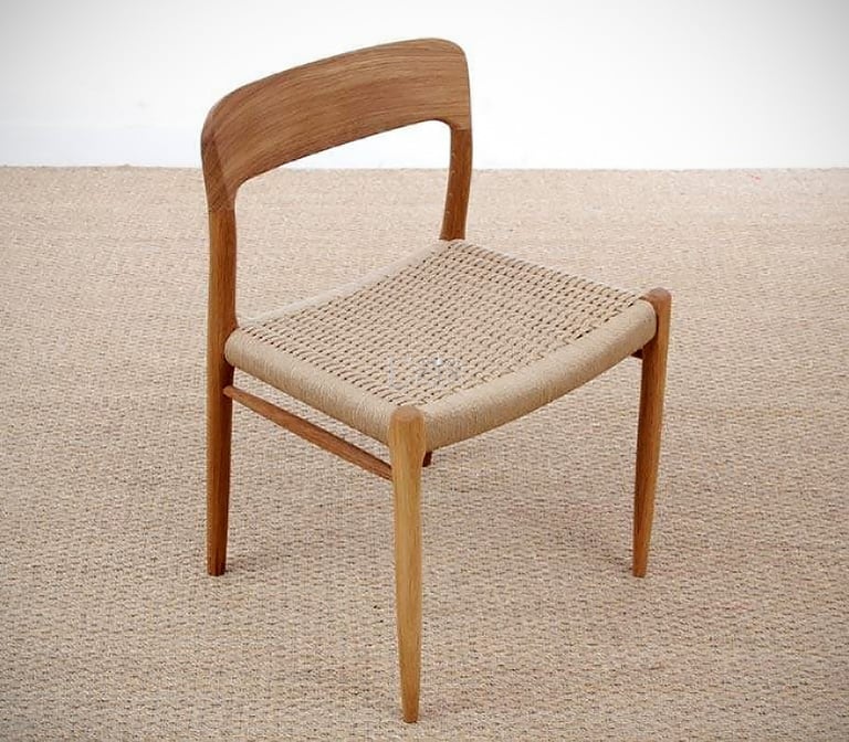 Silla de diseño estilizado y elegante con asiento trenzado.