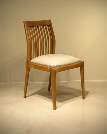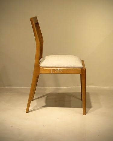 Silla de diseño estilizado y elegante con tapizado en asiento.