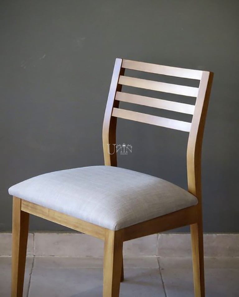 Silla de diseño estilizado y elegante con tapizado en asiento.