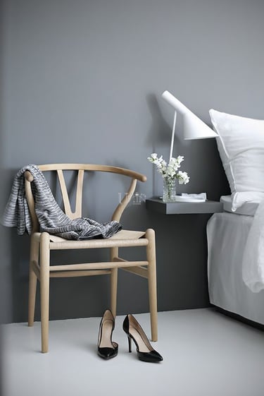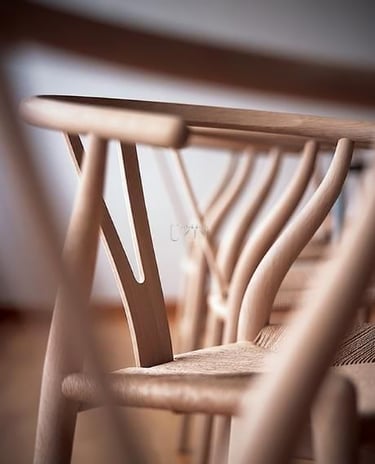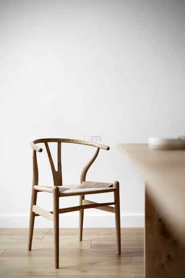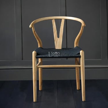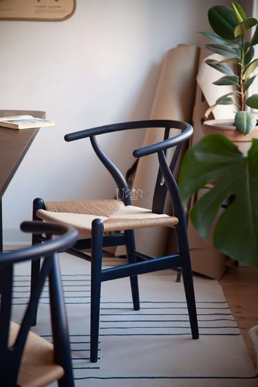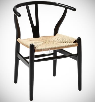 Silla de diseño estilizado y elegante con asiento trenzado.